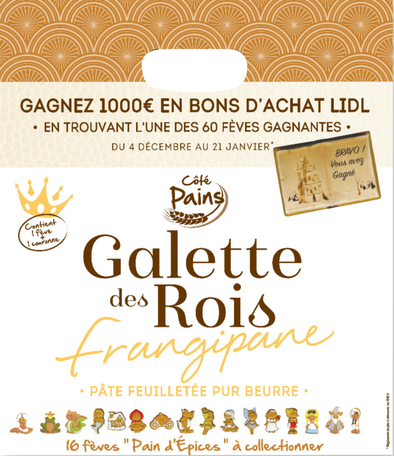 Lidl revient avec ses succulentes galettes des rois. L’enseigne réalise l’opération « Fève gagnante » pour la 4ᵉ année consécutive, du 4 décembre 2025 au 25 janvier 2026. En tout pas moins de 60 fèves gagnantes, chacune offrant 1 000 € en bons d’achat Lidl valables un an. Les galettes sont fabnriquées artisanalement, élaborées en Bretagne et cuites chaque jour en magasin. Il existe deux recettes, l’une à la frangipane généreuse et l’autre aux pommes à partir de pâte feuilletée pur beurrePour faire durer la magie, 10 fèves sur le thème des contes sont à collectionner.