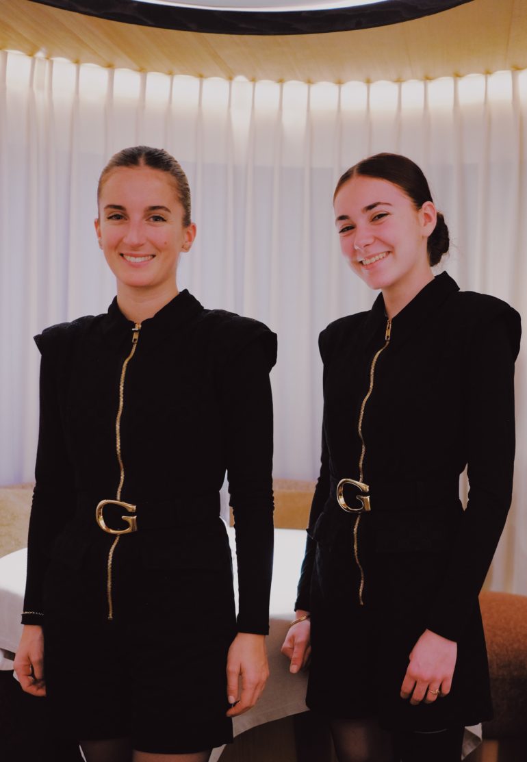 L’équipe de salle féminine porte la « Combinaison en faille avec ceinture à boucle G » et le sommelier du restaurant Sylvestre porte un costume de la maison.