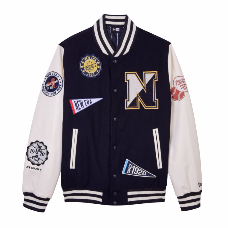 Inspirée par la longue association de la marque avec l’univers du base-ball, la collection de vêtements inclut une sélection de modèles au look sportif rétro, y compris une veste de style universitaire, des t-shirts rayés, et des t-shirts avec patchs graphiques vintage. La veste universitaire fait écho au design des 9TWENTYs avec des badges conçus pour rendre hommage à l’héritage de la marque : on retrouve notamment un grand « N » à gauche, sur la poitrine, pour mettre la marque en valeur. Les t-shirts rayés sont proposés dans des tons naturels discrets, avec fond brun et rayures orange brûlé. Enfin, la collection est complétée par des t-shirts graphiques noir et jaune avec grands motifs imprimés au dos sur le thème du base-ball, dominés par un logo New Era au style rétro et les emblèmes des équipes.