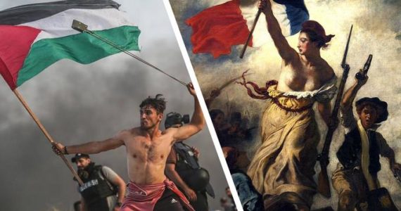 Comparé à la mythique oeuvre de La liberté guidant le peuple d’Eugène Delacroix, le cliché d’un jeune palestinien brandissant un drapeau p…