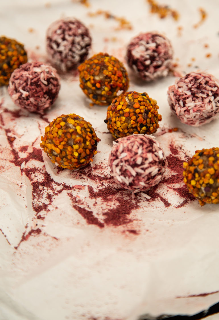 Pink Energy Balls est un snack sain et rassasiant, idéal en encas, à base de dattes et de poudre de betterave pour un teint resplendissant.