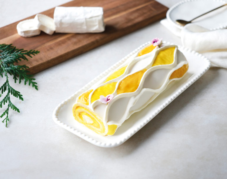 - Découpez le reste de la bûche en tranches, enroulez-les dans un film plastique et roulez-les jusqu’à obtenir un boudin. Réservez au froid.