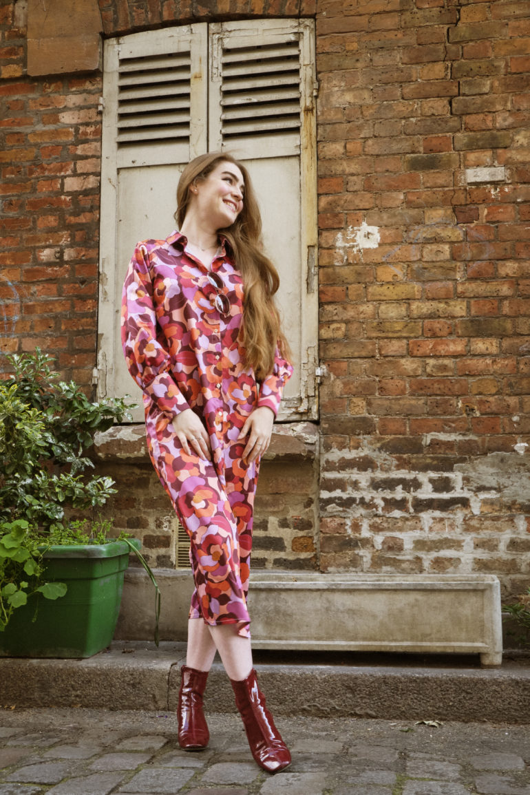 Imaginée lors d’un voyage en Italie, le modèle Posidonie rend plus particulièrement hommage à la Sicile. Lors de son ascension de l’Etna, Sarah a capturé l’essence des paysages qui l’entouraient pour les transposer en motifs sur cette incontournable robe chemise. Sa longueur permet d’admirer l’ensemble de la composition comme un tissu tableau : un imprimé fond marin avec des méduses pour rappeler l’île, ainsi que de couleurs flamboyantes qui matérialisent le volcan. Simple en apparence, elle s’agrémente de nombreux détails qui font la différence, comme ses poignets resserrés, sa pince dans le dos, ses boutons ton sur ton et son tomber vaporeux à grand volume. Sa singularité réside dans sa versatilité puisqu’avec cette pièce, il est possible de réaliser plusieurs looks avec cette robe : façon chemise ou kimono, et même ceinturée en option.