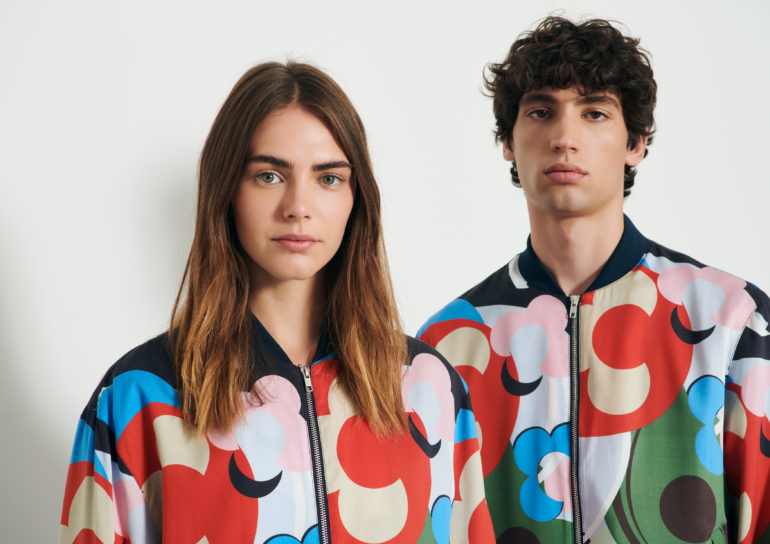 Le collection est composée de chemises, vestes, t-shirts aux imprimés inspirés du graphisme des années 70, jouant avec des motifs géométriques, des motifs floraux abstraits et des imprimés colorblocks comprenant des rayures et des carreaux audacieux.