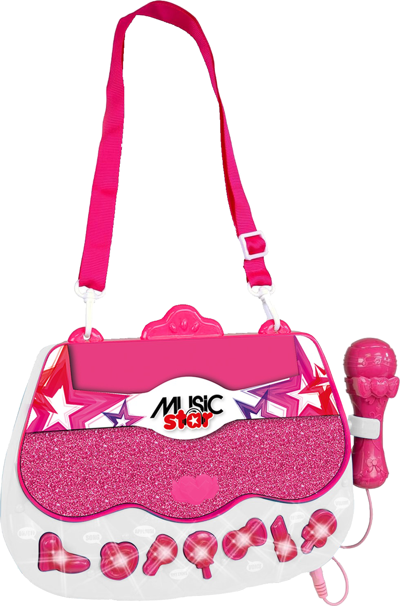 Un sac à main aussi chic que fun ! Avec son enceinte intégrée et son micro de karaoké, le Sac Karaoké Music Star permet aux petites stars de chanter, écouter leur musique et créer leurs propres chansons partout où elles vont. Un accessoire tendance qui fait briller la créativité.