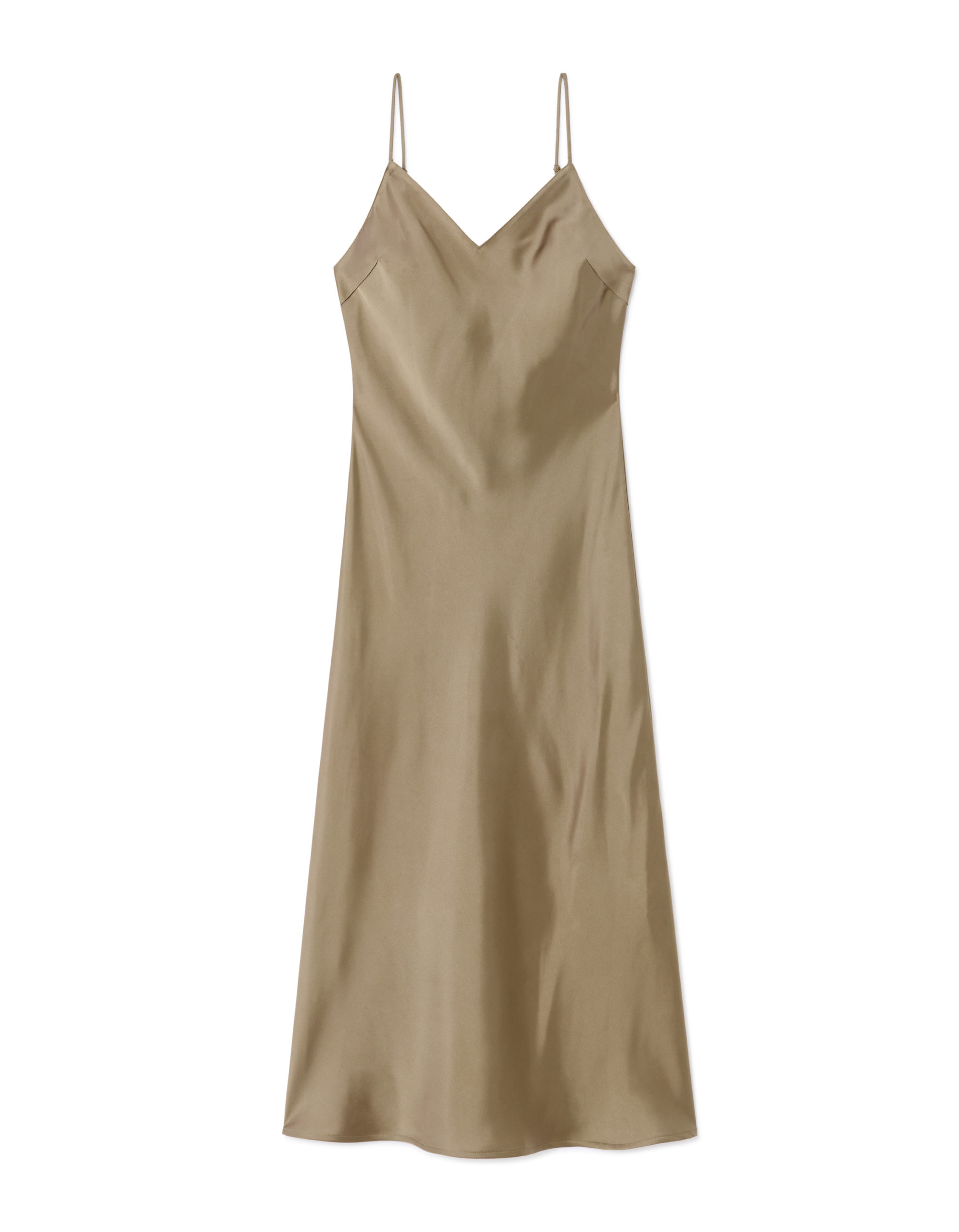 Be camaïeu – Robe satinée à fines bretelles – beige- 35,99 €