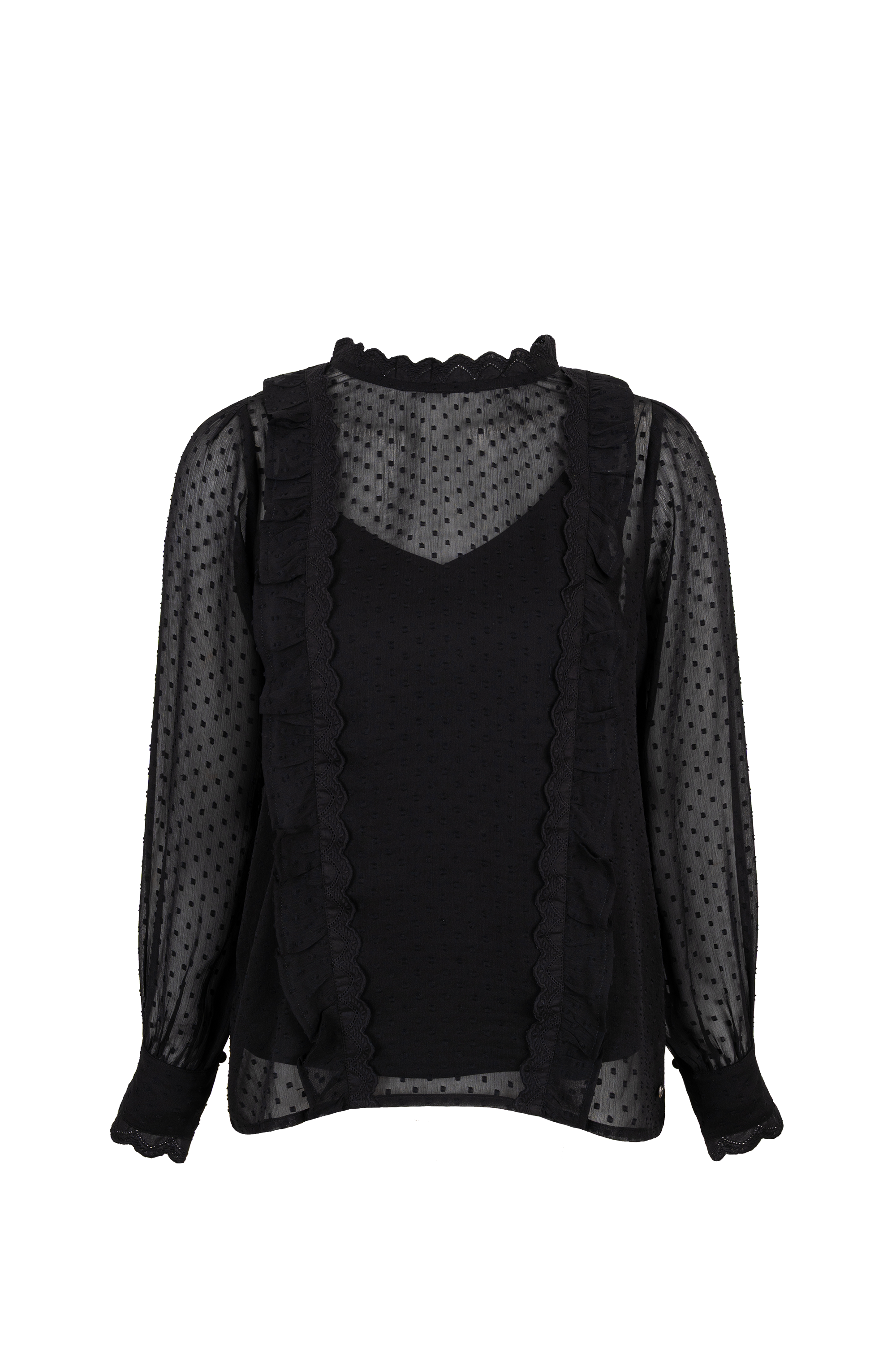 Charlott’ – Blouse LUNEL -col montant buste et manches ajourées – 75 €