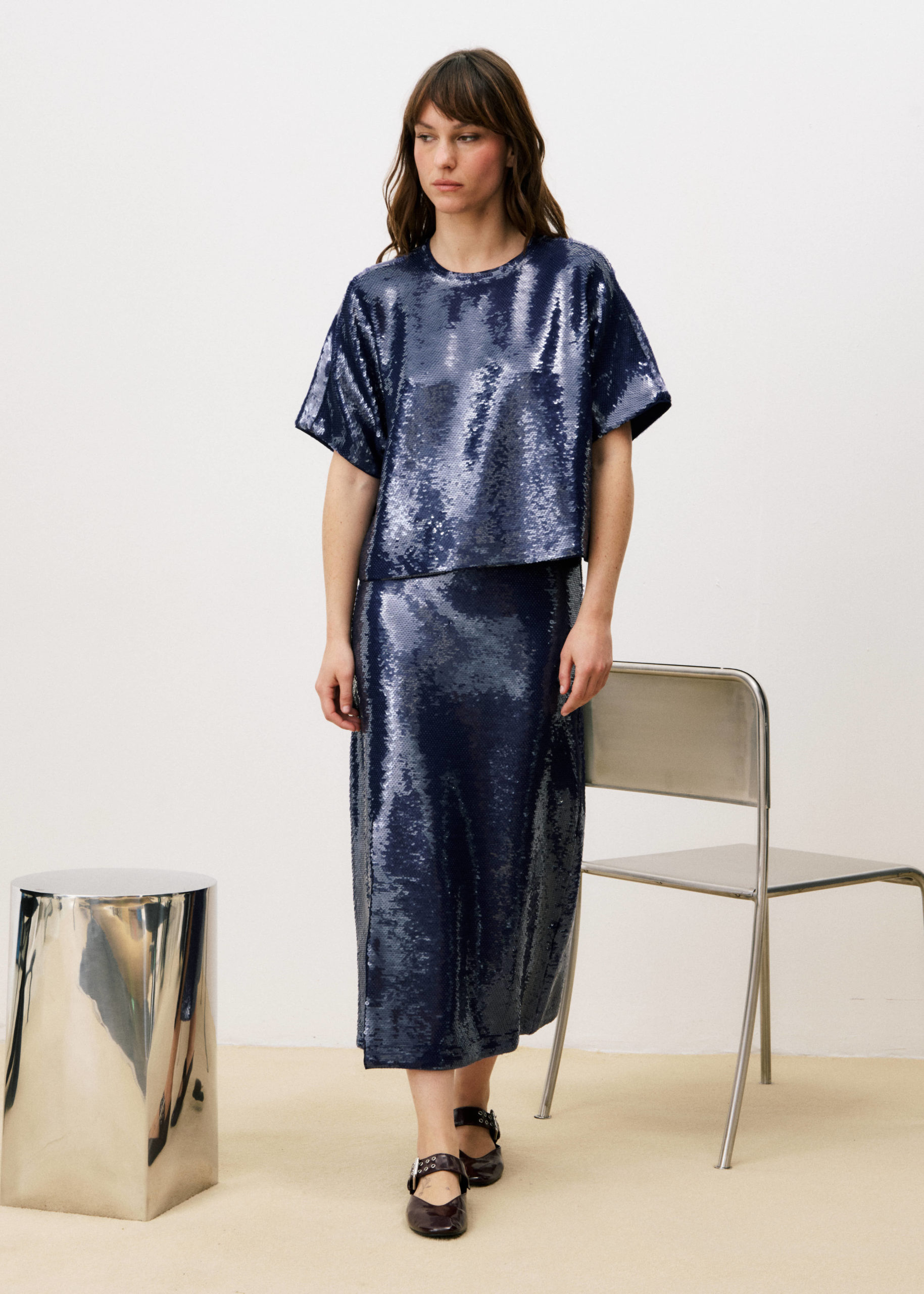 FRNCH- Top Diana bleu jean à sequins 99€ & Jupe Ross bleu jean à sequins -109€