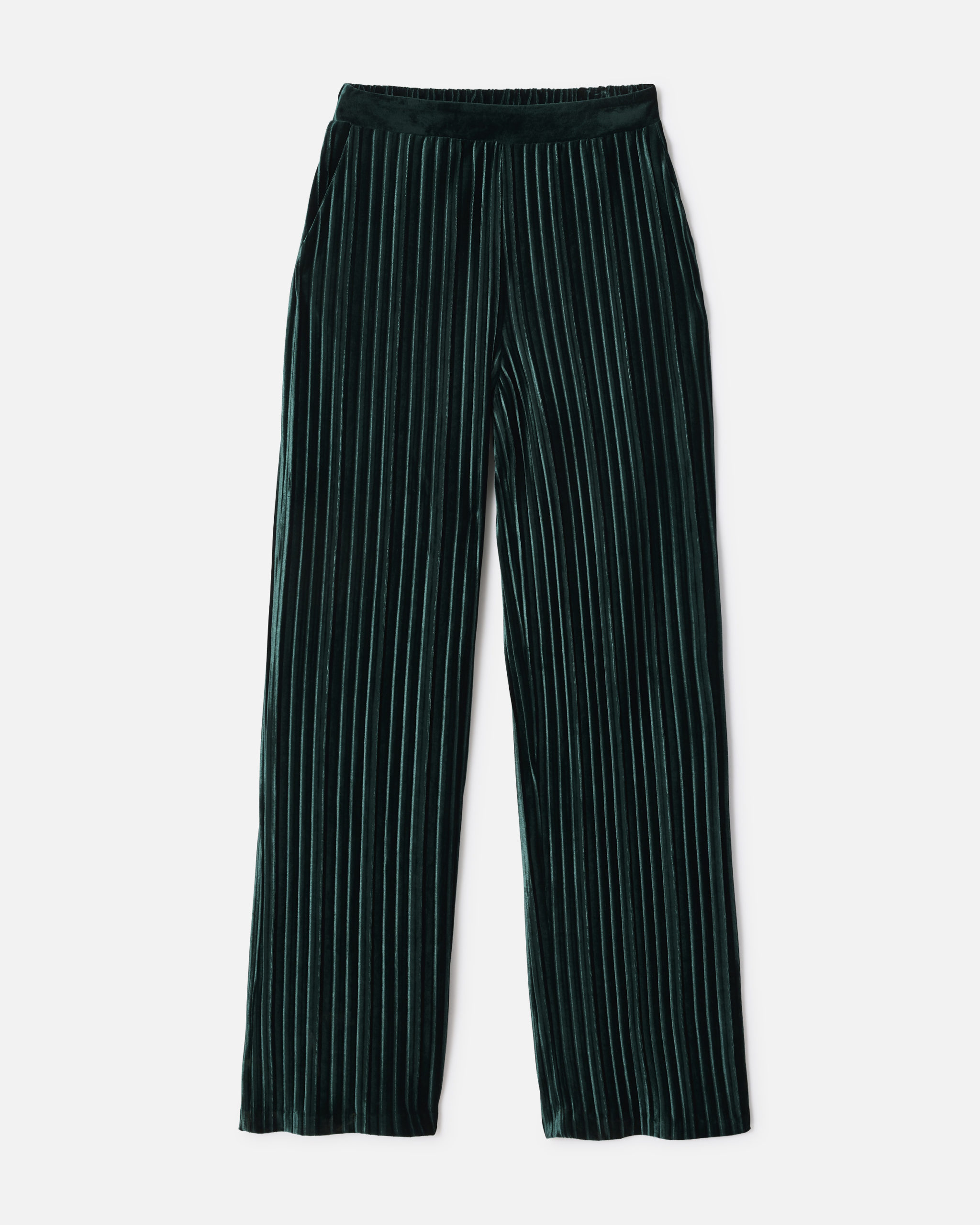 Damart – Pantalon en velours plissé noir et vert satiné – 59,99€