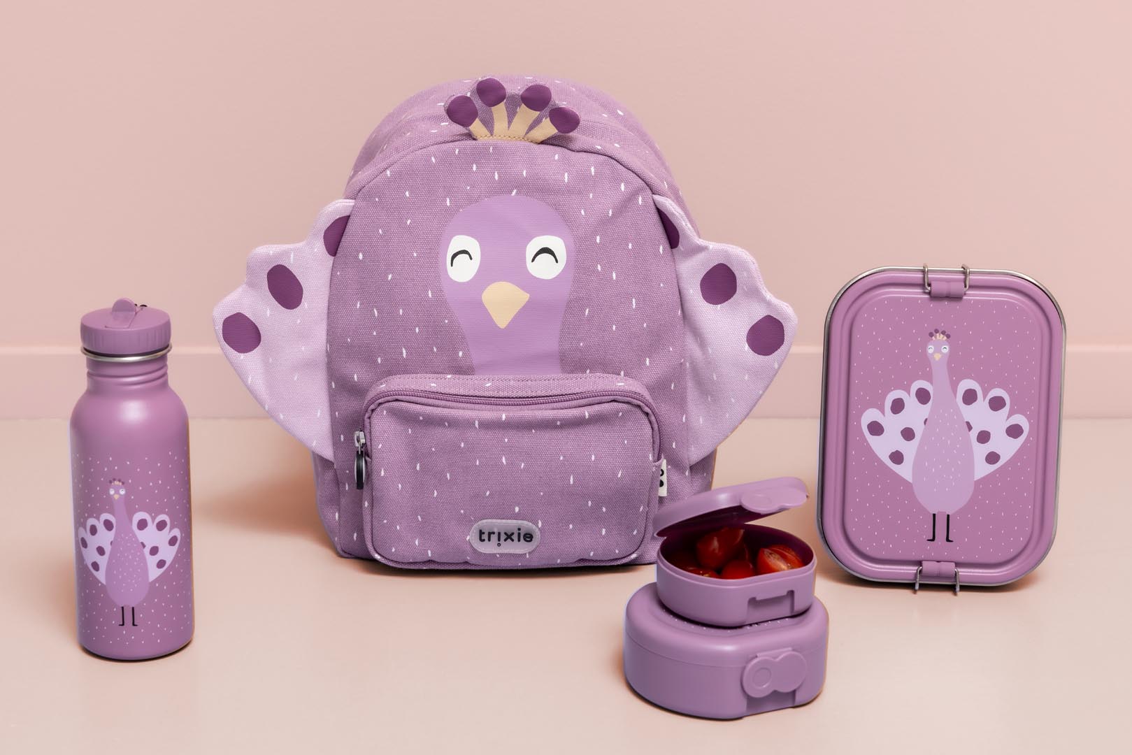 Mrs Peacock est un nouveau personnage violet vibrant fraîchement arrivé pour compléter la collection de la gamme Mealtime. Le enfants pourront ainsi profiter d’accessoires aux notes fun et colorées tout en dégustant leurs repas.