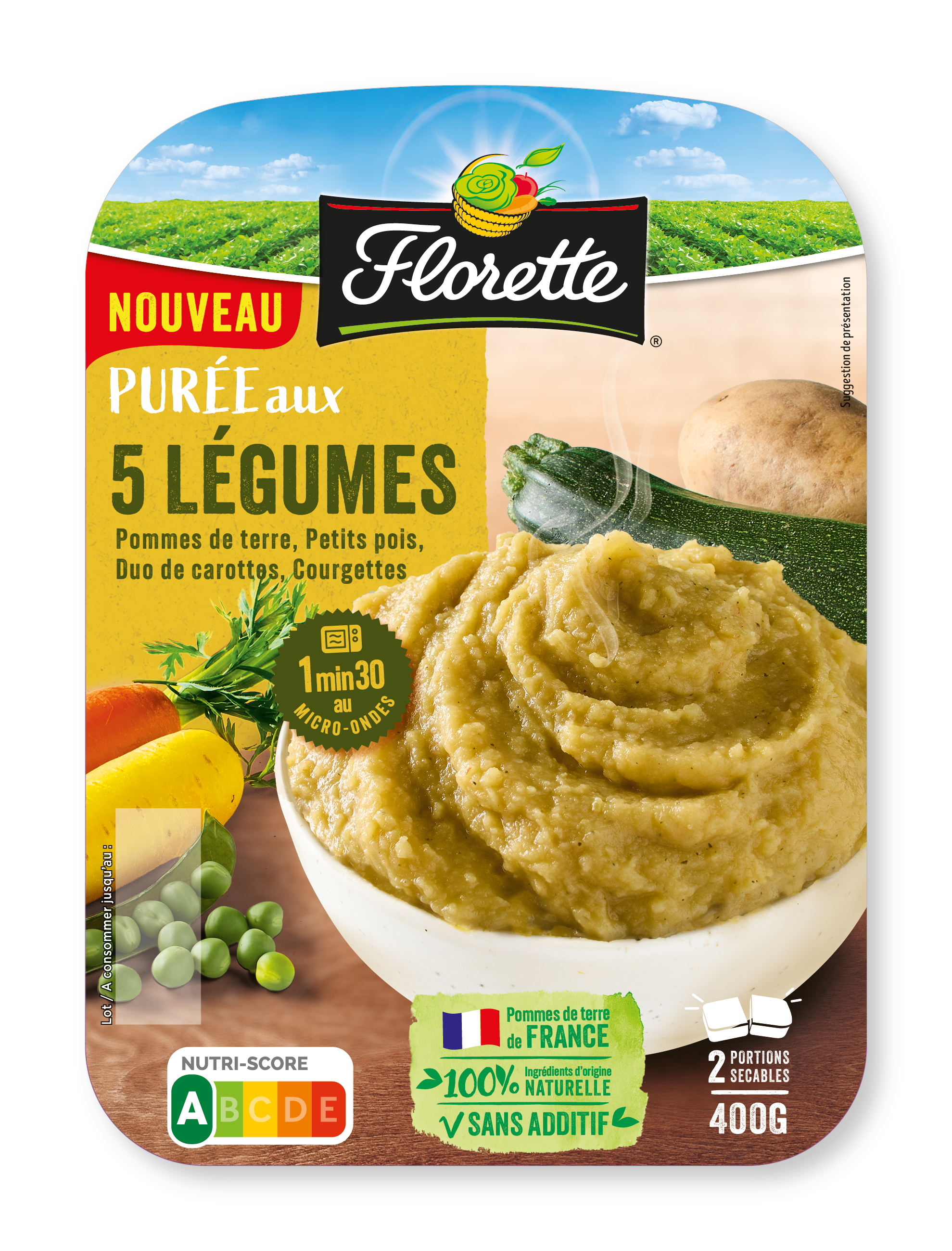 Florette lance sa première purée aux 5 légumes. Ce mélange onctueux de pommes de terre, carottes, petits pois, courgettes, relevé d’une touche de crème et d’ail saura plaire tous les goûts. Cette purée aux multiples saveurs est réconfortante. Par ailleurs, elle est rapide à préparer. Une manière de manger sainement des légumes sans se prendre la tête.