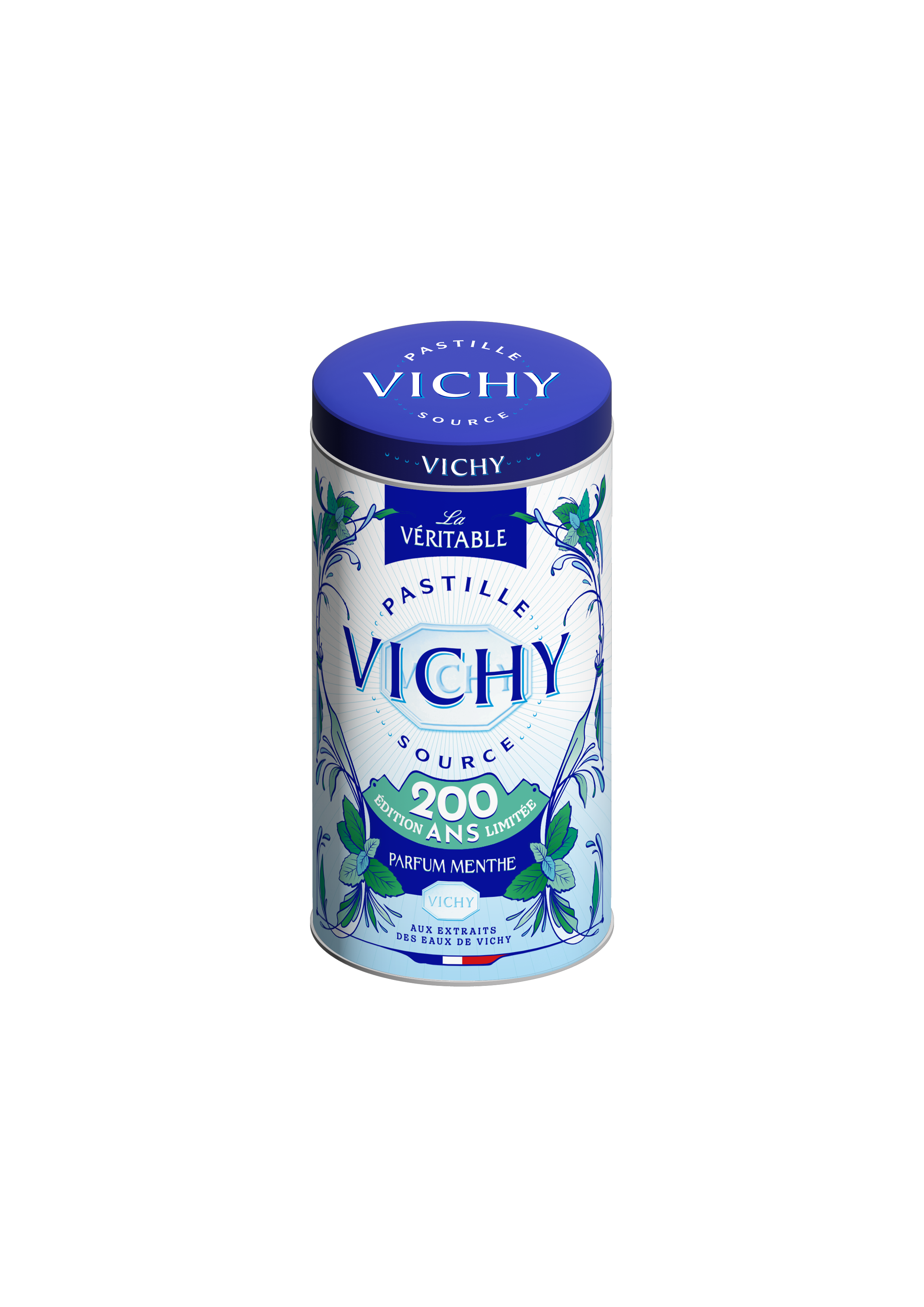 Pour célébrer les 200 ans de la mythique pastille Vichy, les célèbres pastilles à la menthe rafraîchissantes et riches en sels minéraux se parent d’une boîte en métal collector. Ce boîtier rétro est réutilisable.