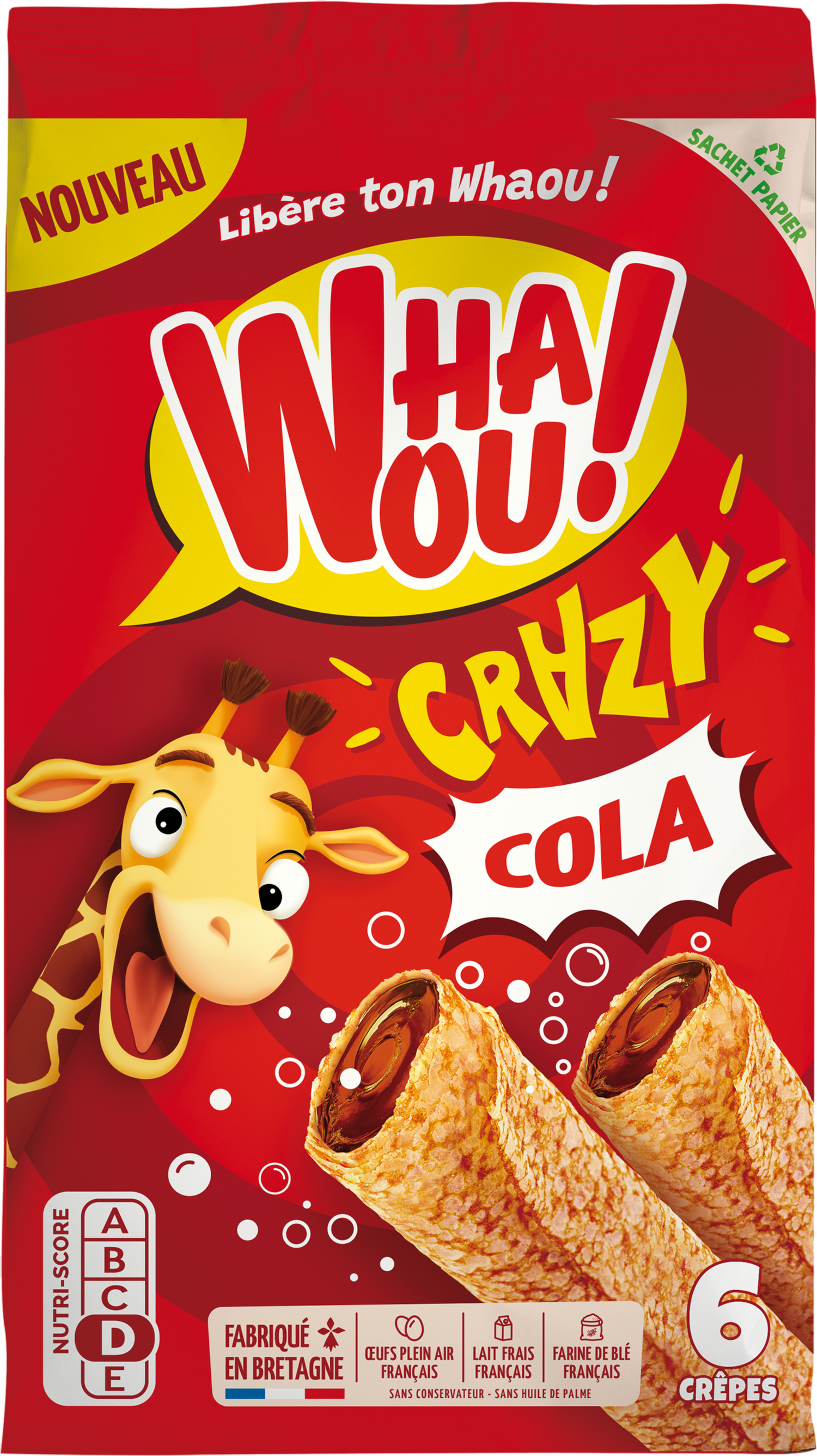 Oubliez les bonbons, cette année, Whaou ! bouscule les codes avec CRAZY COLA, la première crêpe fourrée au goût cola. Cette recette complètement inédite est légèrement acidulée. Elle est aussi succulente que surprenante et comblera les fringales des petits et grands gourmands à l’heure du goûter ou pour une pause réconfortante.