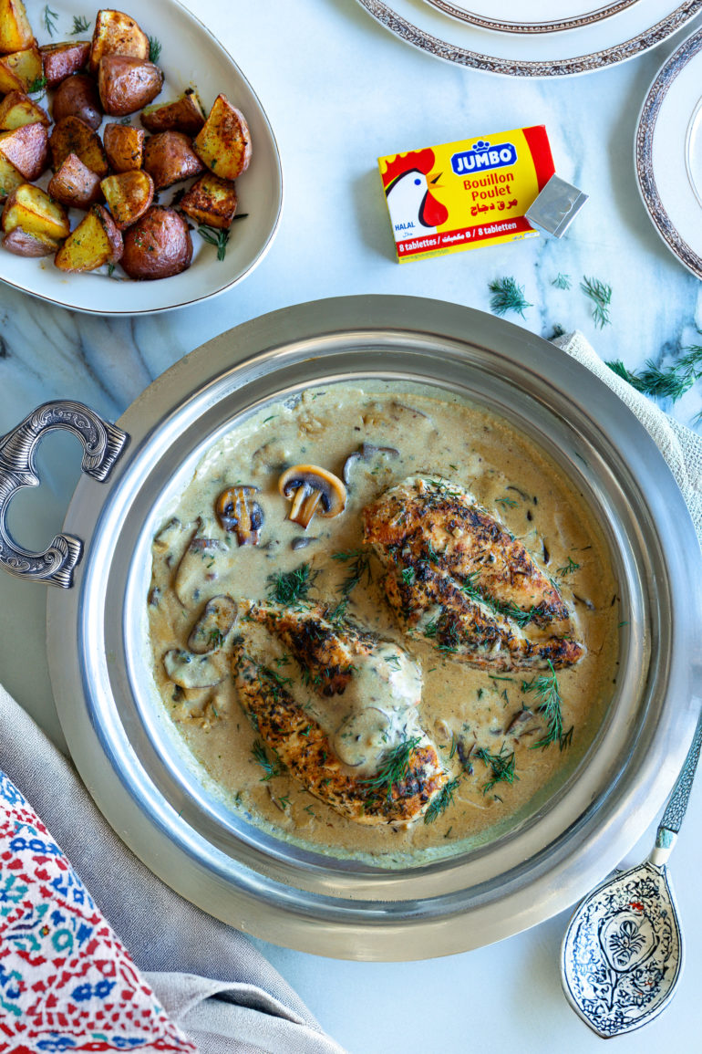 Suprêmes de poulet à la crème et aux champignons façon algérienne