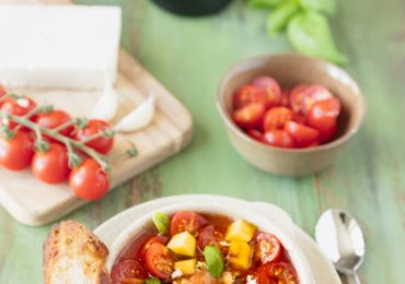 Pour 4 personnes – 10 minutes de préparation – 1h de repos Ingrédients : 3 c.à.s. d’huile d’olive Vierge Extra Vivace Carapelli® Spray de vinaigre balsamique Carapelli® 600 g de tom…