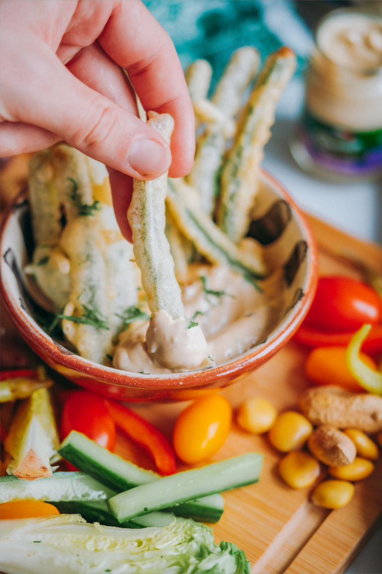 Tempura d ’haricots verts et sauce Gourmet Truffe d’été